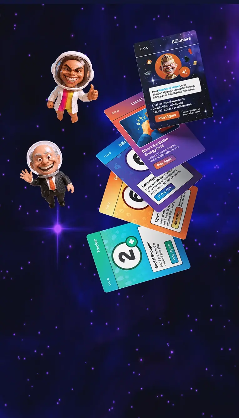 Billionaires play with our personal data like it's a game, which, if it were a card game, would be this game. Make Billionaire moves, upend norms, wreak havoc and blast off.